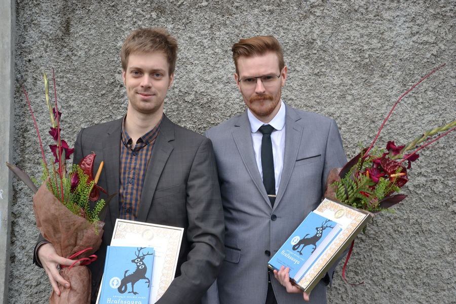 Kjartan Yngvi Björnsson og Snæbjörn Brynjarsson hljóta Íslensku barnabókaverðlaunin fyrir bókina Hrafnsauga.